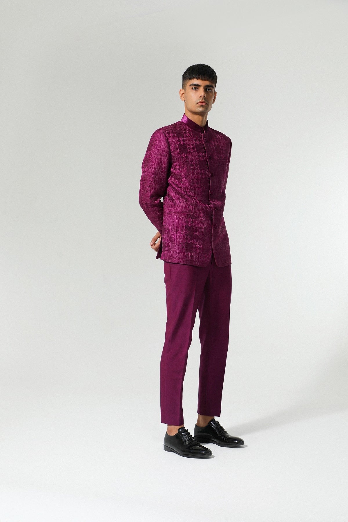 Chanderi bandh gala suit adorned with delicate threadwork BG018